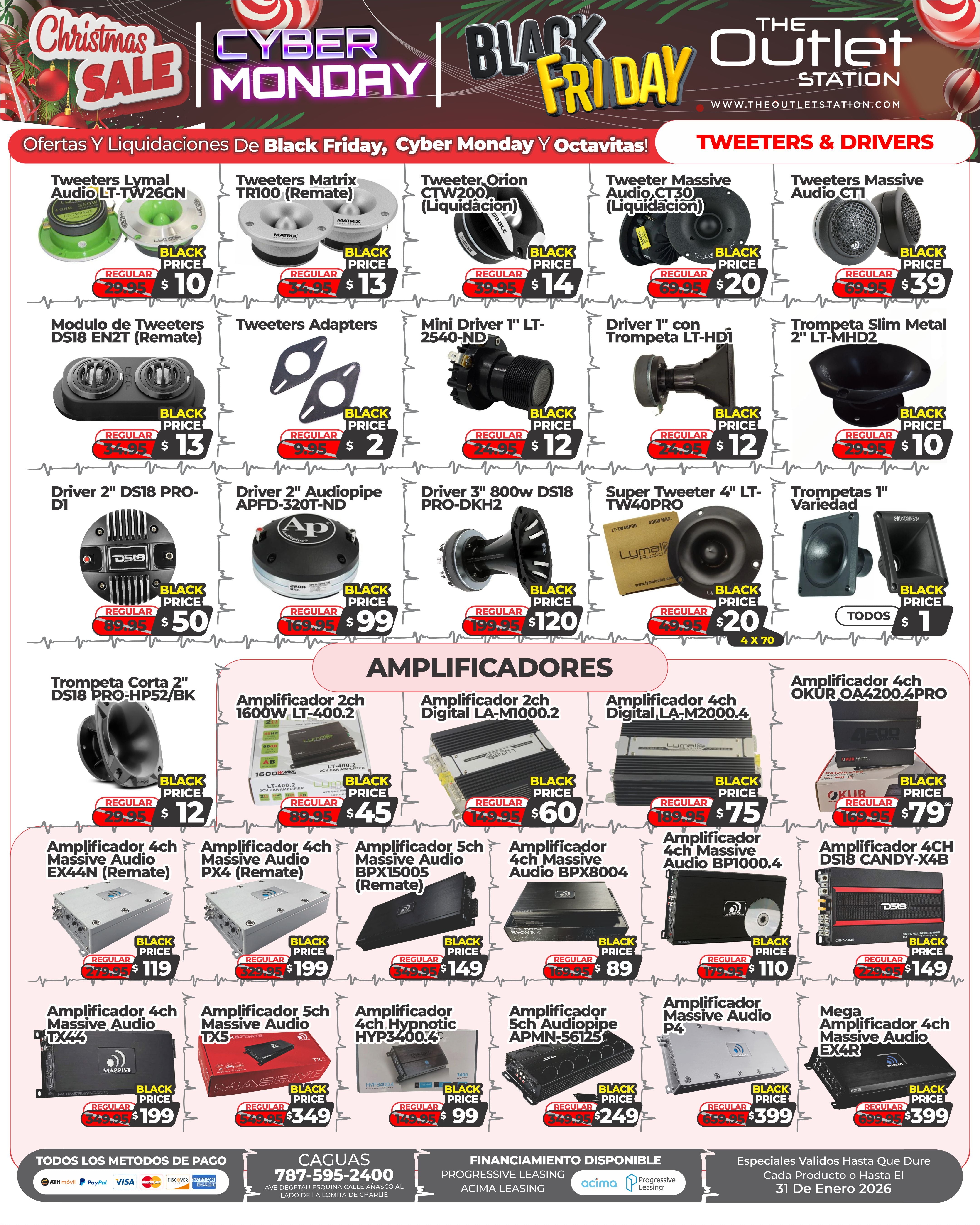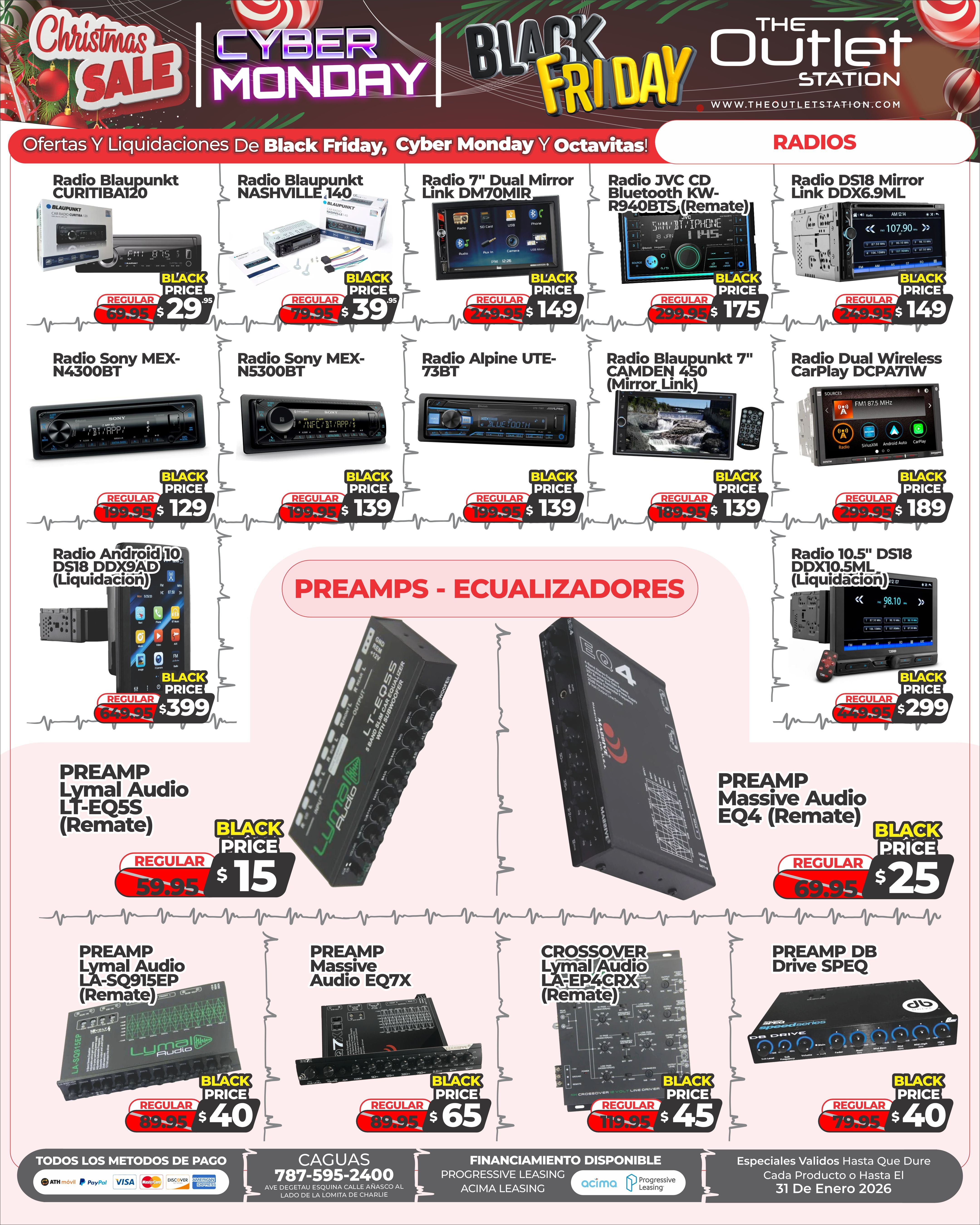 Tu tienda #1 en Car Audio Puerto Rico: radios, bocinas, subwoofers, amplificadores, tweeters, drivers, alarmas, preamps, equalizers, cableado y accesorios.